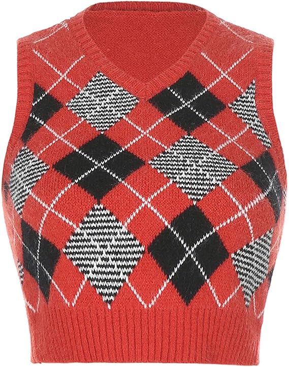 Plaid Knitted Sweater Vest For Women Preppy Style V Neck Y2k Tops Streetwear Aesthetic 90s Vest At Amazon Women S Clothing Store - Simply ordering up a few sizes will give you an.